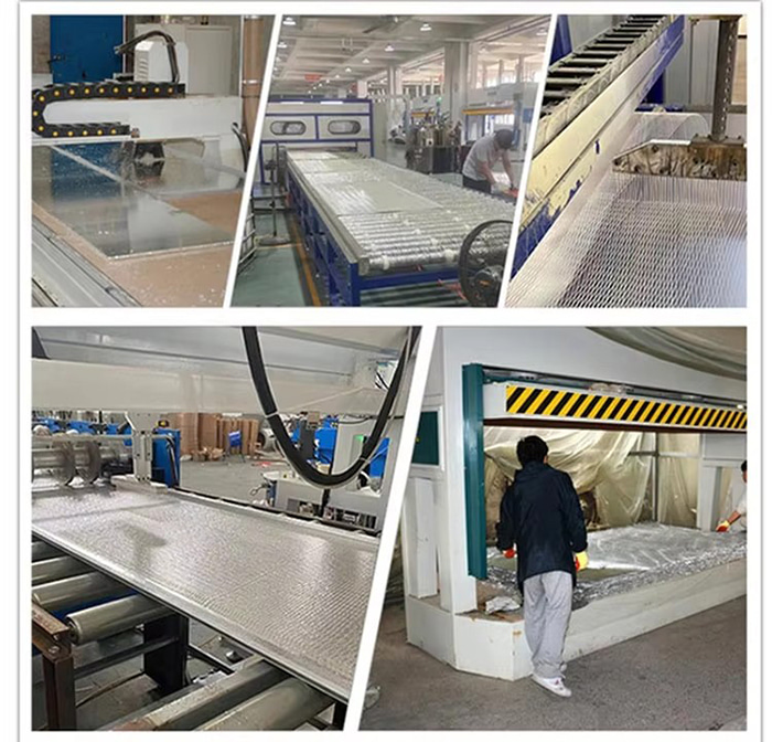 Výber lepidla: Hliníkové voštinové panely vyrobené kontinuálnym kompozitným procesom polyuretánu, vytvrdzovacieho lepidla reaktívneho na epoxidovú živicu alebo termoplastickej fólie.