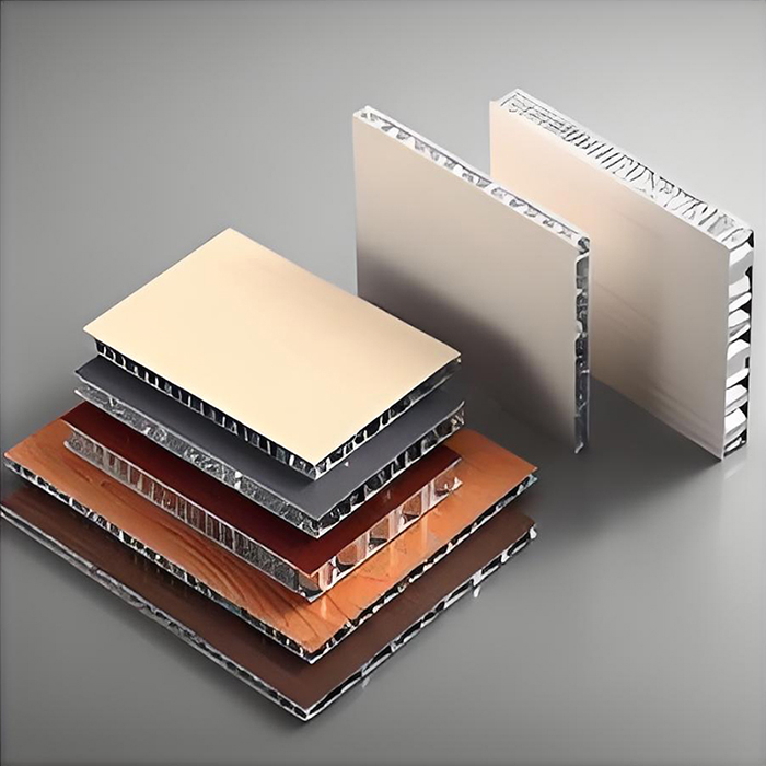 Hliníkový voštinový stenový panel je sendvičová konštrukcia pozostávajúca z dvoch vrstiev hliníka a voštinového jadra. Panel je vyrobený hlavne z vysoko kvalitnej hliníkovej platne zo zliatiny 3003H24 alebo hliníkovej platne zo zliatiny mangánu 5052AH14 ako základného materiálu s hrúbkou panelu 0,8 ~ 1,5 mm a hrúbkou spodnej dosky 0,6 ~ 1,0 mm. Voštinové jadro je vyrobené z veľmi tenkej hliníkovej fólie 3003 s hrúbkou 0,04 ~ 0,06 mm a dĺžkou strany 5 ~ 6 mm. Má šesťhrannú štruktúru voštinových otvorov s otvormi navzájom spojenými. Celý proces spracovania je ukončený v modernej továrni pomocou technológie lisovania za tepla.