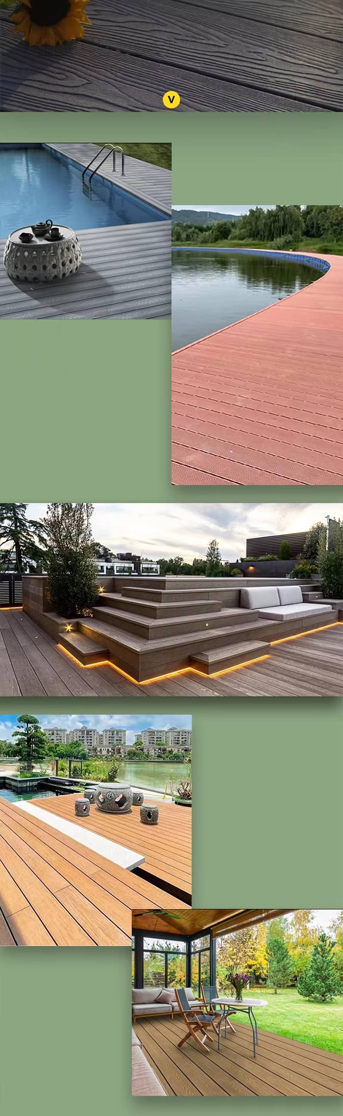 Vonkajšie prostredie: Ako sú terasy, paluby, záhradné chodníky, komerčné pešie ulice atď., So silnou odolnosťou voči poveternostným vplyvom, proti hmyzu, vhodné na vonkajšie použitie