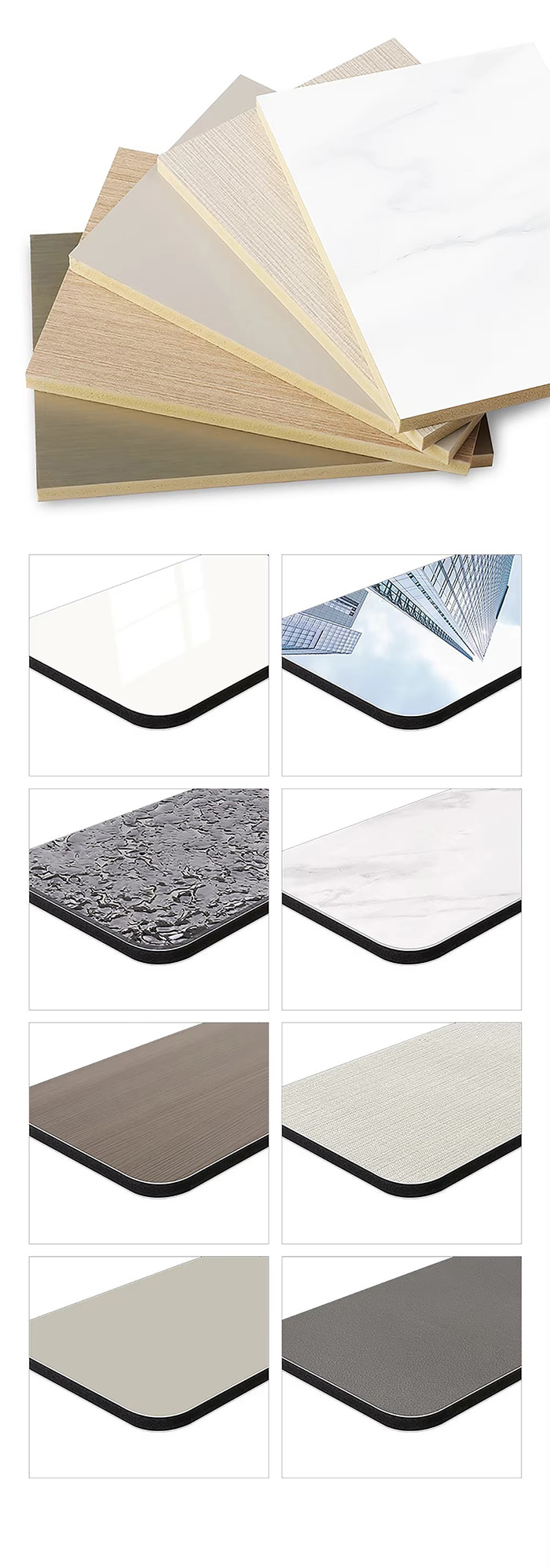 Bohaté farby a vzory je možné prispôsobiť pomocou rôznych povrchových úprav, ako je textúra dreva, kameňa a kovová kefka, aby vyhovovali rôznym požiadavkám na štýl.