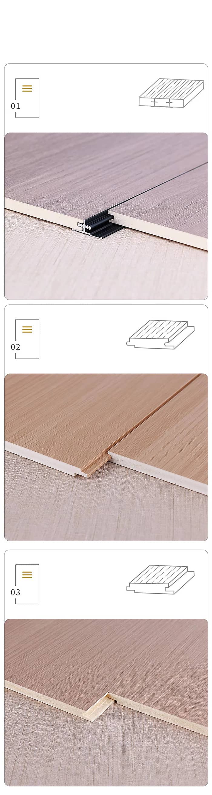 (3) Postup výstavby Úprava steny: Vyžaduje sa vyrovnanie a na inštaláciu možno použiť drevené kýly alebo priame lepenie. Spôsob spájania: Na bezproblémové spájanie použite drážky pre matku a dieťa a kovové uzatváracie pásiky. Uzatváracia úprava: Vnútorné a vonkajšie rohy môžu byť zakrivené alebo je možné použiť profilové uzatváracie lišty na optimalizáciu estetiky8.
