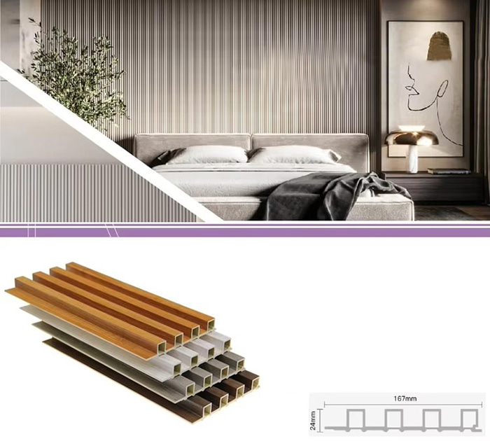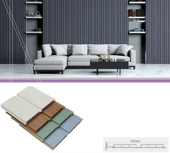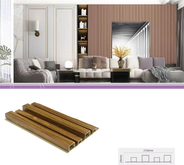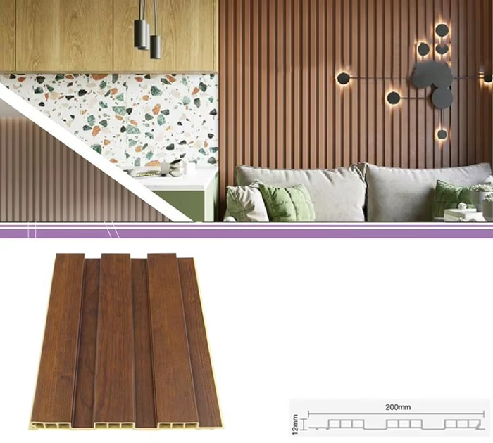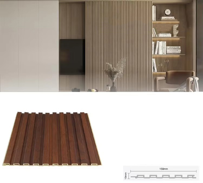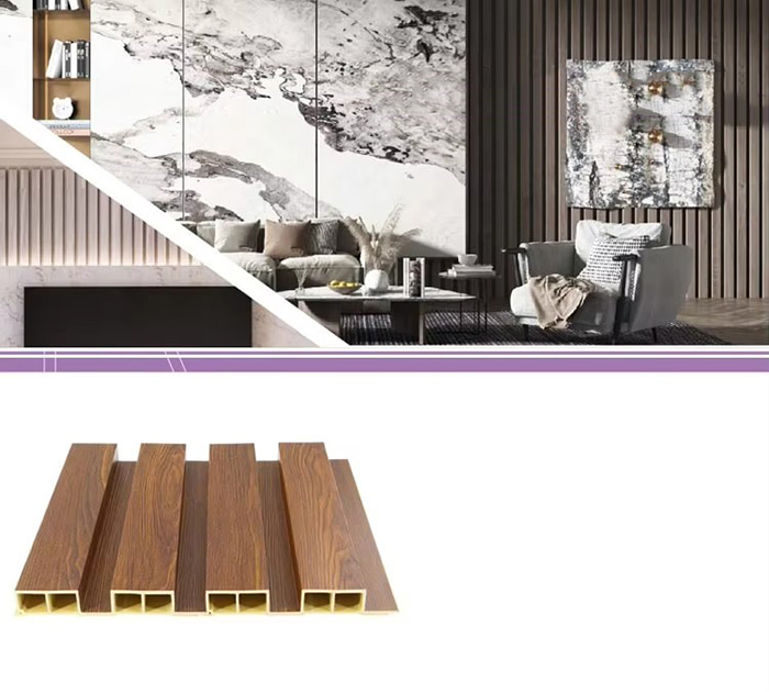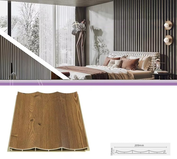 Vnútorné panely WPC, alebo drevoplastové kompozitné vnútorné panely, sú novým typom ekologického stavebného materiálu vyrobeného z drevených vlákien alebo dreveného prášku kombinovaného s termoplastmi (ako je polyetylén, polypropylén alebo polyvinylchlorid). Tento materiál sa vyrába vysokoteplotným extrúznym lisovaním a povrch je zvyčajne zdobený lamináciou, 3D tlačou alebo lamináciou filmu, pričom vykazuje prirodzenú textúru a pocit podobný drevu, pričom má tiež trvanlivosť a odolnosť plastu voči poveternostným vplyvom. Vnútorné panely WPC majú nielen krásny vzhľad dreva, ale prekonávajú aj nedostatky dreva, ako je ľahká deformácia, absorpcia vlhkosti a rozklad, čo z nich robí ideálny materiál na dekoráciu interiéru