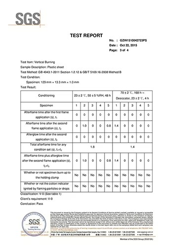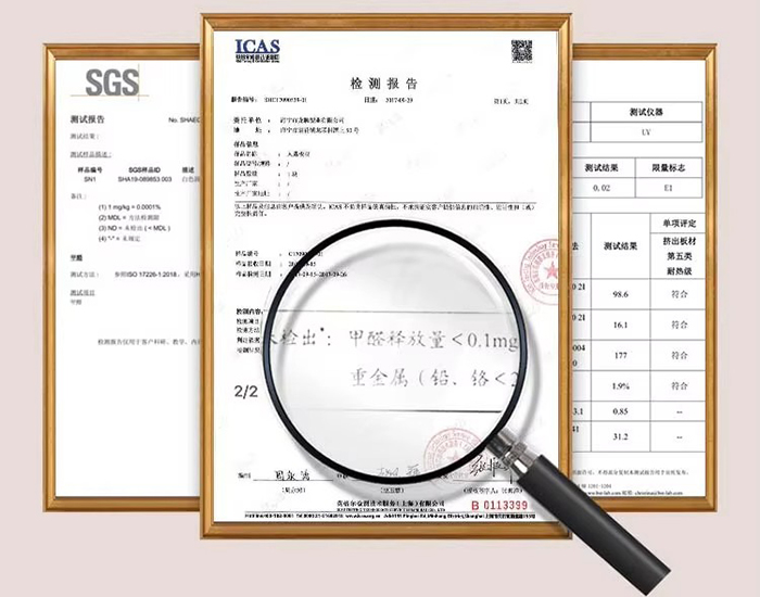 Skúška ohňa: štandard GB 8624, spomaľovač horenia B1.Proces šetrný k životnému prostrediu Používa ekologický vzorec bez obsahu olova a kadmia a chladiaci systém cirkulujúcej vody počas výrobného procesu znižuje znečistenie.