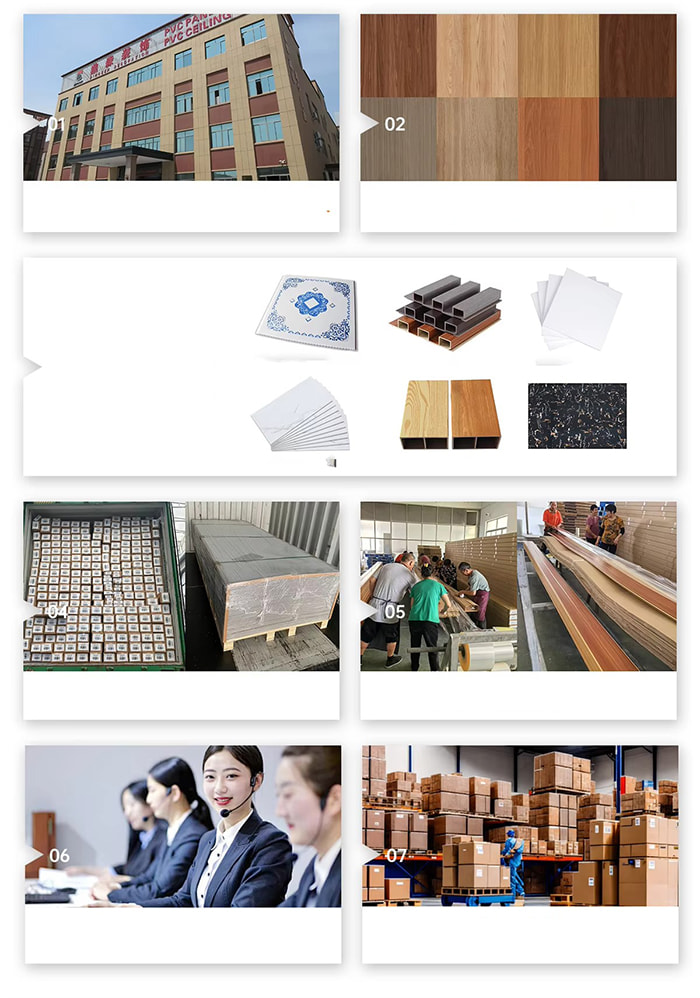 Medzi naše hlavné produkty patria: PVC stropné panely, PVC nástenné panely, WPC nástenné panely, fólia na razenie za horúca, PVC laminovacia fólia, SPC podlahy, WPC palubovky a ďalšie súvisiace produkty. Náš ročný obrat môže dosiahnuť až 35 miliónov USD