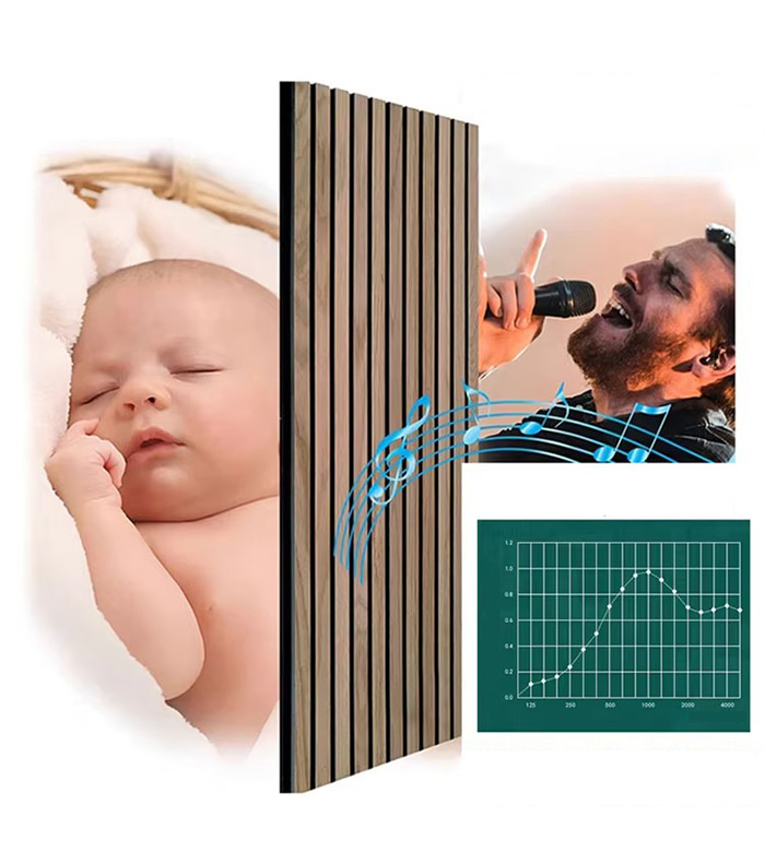 WPC zvuk pohlcujúca doska je kompozitná funkčná doska s dreveným alebo bambusovým vláknom ako základným zvukovo pohlcujúcim médiom, kombinovaná s PVC živicou, zvuk pohlcujúcou bavlnou a antistatickým náterom. Vďaka dizajnu poréznej štruktúry s vysokou hustotou (pórovitosť ≥ 30 %) účinne absorbuje stredné a vysokofrekvenčné zvukové vlny (miera absorpcie zvuku 500 Hz-4 000 Hz ≥ 85 %) a má vlastnosti odolné voči vlhkosti, ohňu a šetrné k životnému prostrediu. Je vhodný pre scény s vysokými akustickými požiadavkami, ako sú nahrávacie štúdiá, divadlá a konferenčné miestnosti. Je to vylepšená náhrada za tradičné dosky z bavlny a minerálnej vlny pohlcujúce zvuk.