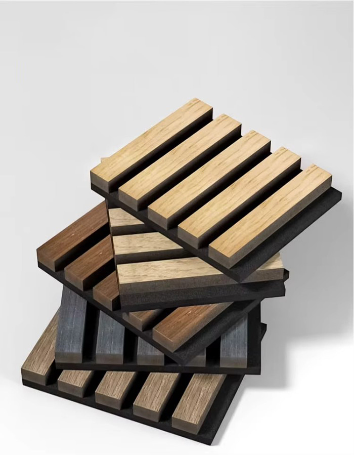 Povrchová úprava Drážkovaná kresba dreva, voštinové otvory, vlnité vzory, textúra tkanín (pórovité štruktúry zvyšujú absorpciu zvuku)